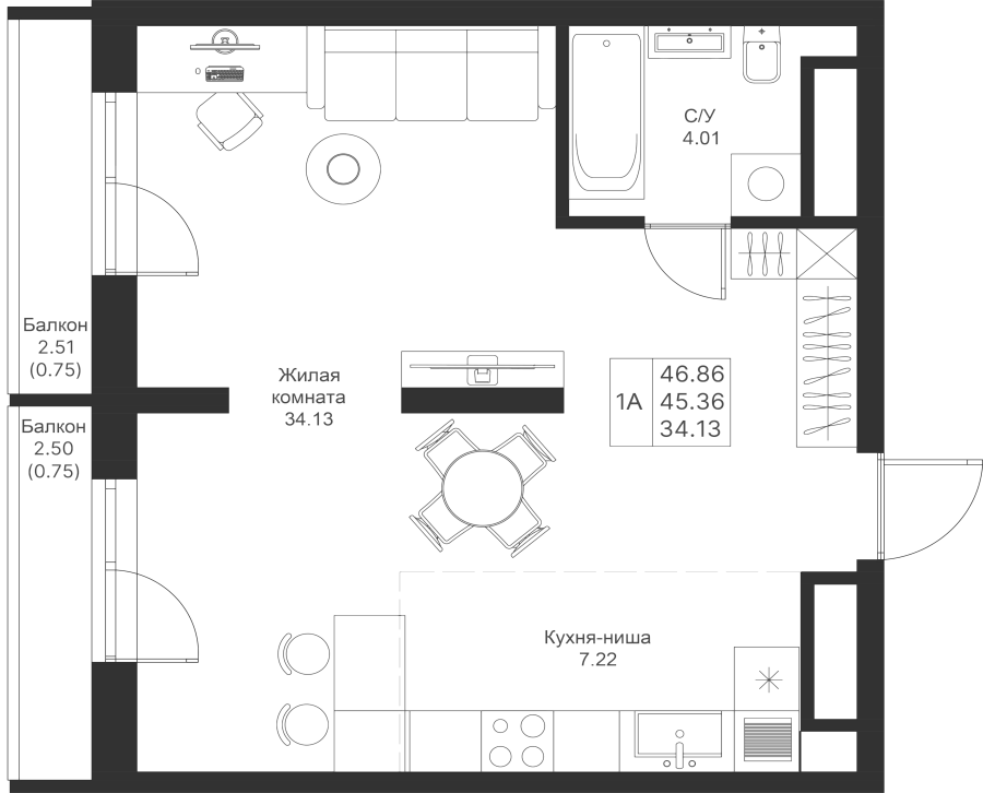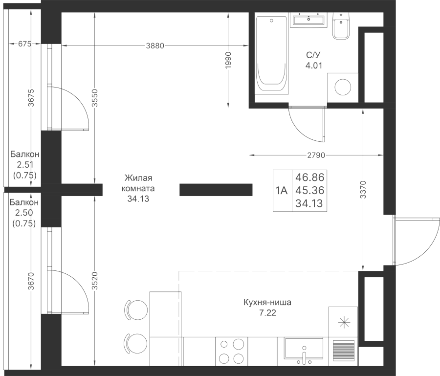 Визуализация и планировка, в том числе в части площади и размера стен жилого помещения, являются проектными и могут быть изменены в ходе строительства объекта. Цена квартиры зависит от выбранной программы и акции, актуальные цены можно уточнить у менеджеров и на момент заключения договора.