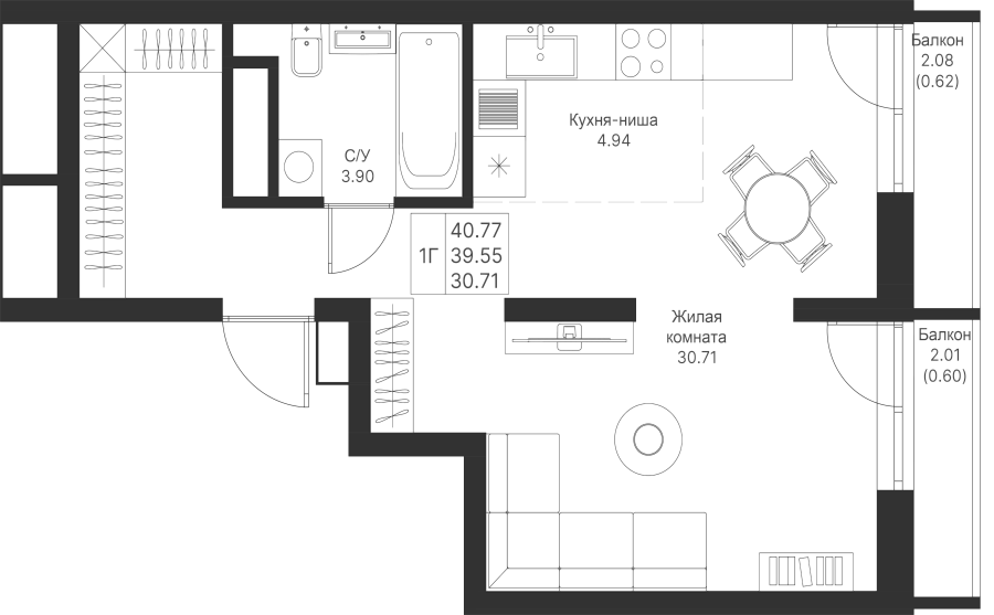 Визуализация и планировка, в том числе в части площади и размера стен жилого помещения, являются проектными и могут быть изменены в ходе строительства объекта. Цена квартиры зависит от выбранной программы и акции, актуальные цены можно уточнить у менеджеров и на момент заключения договора.