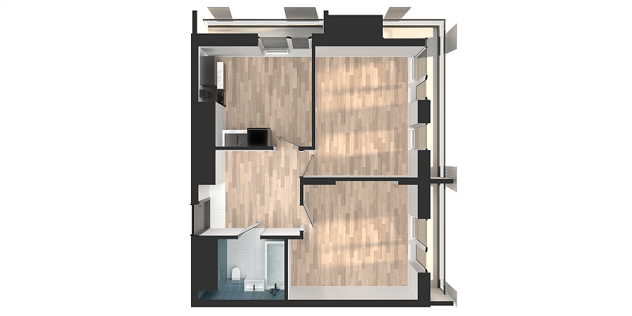 Визуализация и планировка, в том числе в части площади и размера стен жилого помещения, являются проектными и могут быть изменены в ходе строительства объекта. Цена квартиры зависит от выбранной программы и акции, актуальные цены можно уточнить у менеджеров и на момент заключения договора.