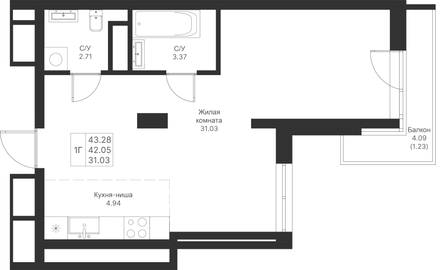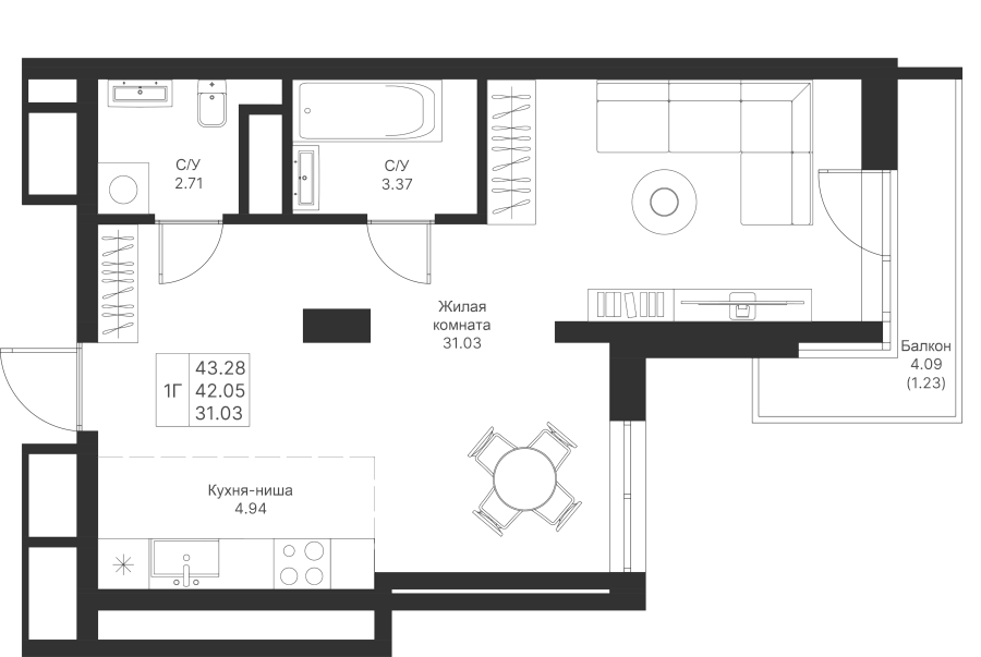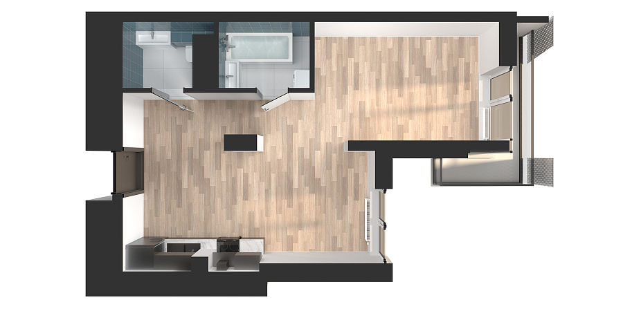Визуализация и планировка, в том числе в части площади и размера стен жилого помещения, являются проектными и могут быть изменены в ходе строительства объекта. Цена квартиры зависит от выбранной программы и акции, актуальные цены можно уточнить у менеджеров и на момент заключения договора.