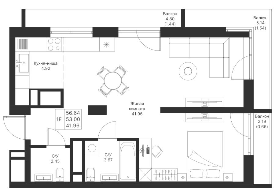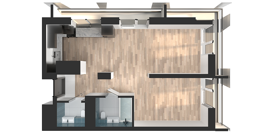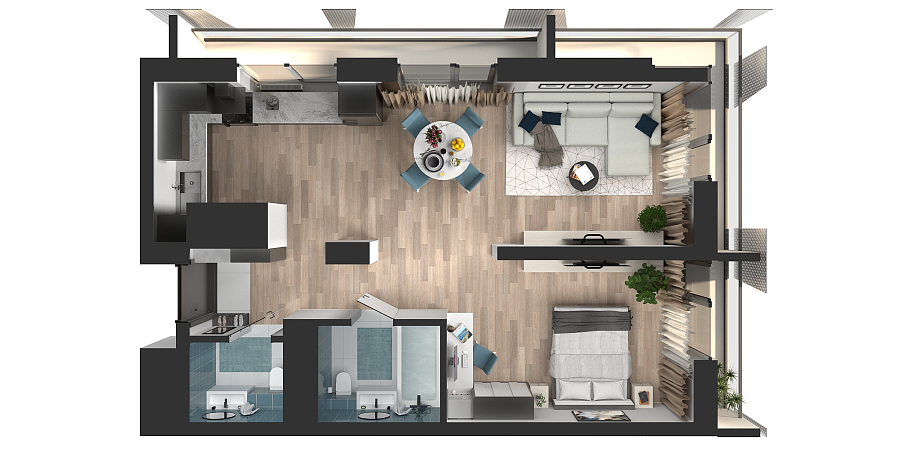 Визуализация и планировка, в том числе в части площади и размера стен жилого помещения, являются проектными и могут быть изменены в ходе строительства объекта. Цена квартиры зависит от выбранной программы и акции, актуальные цены можно уточнить у менеджеров и на момент заключения договора.