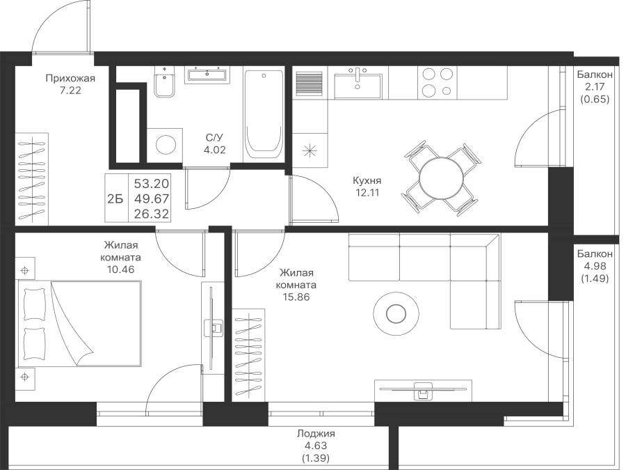 Визуализация и планировка, в том числе в части площади и размера стен жилого помещения, являются проектными и могут быть изменены в ходе строительства объекта. Цена квартиры зависит от выбранной программы и акции, актуальные цены можно уточнить у менеджеров и на момент заключения договора.