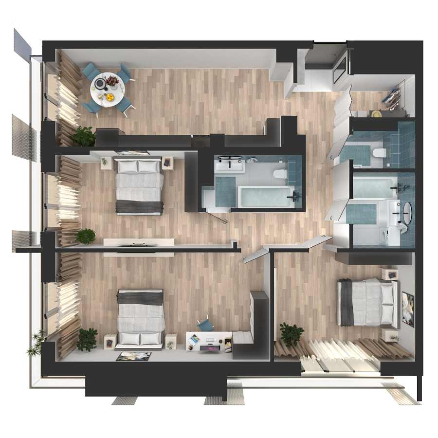 Визуализация и планировка, в том числе в части площади и размера стен жилого помещения, являются проектными и могут быть изменены в ходе строительства объекта. Цена квартиры зависит от выбранной программы и акции, актуальные цены можно уточнить у менеджеров и на момент заключения договора.