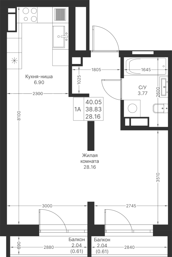 Визуализация и планировка, в том числе в части площади и размера стен жилого помещения, являются проектными и могут быть изменены в ходе строительства объекта. Цена квартиры зависит от выбранной программы и акции, актуальные цены можно уточнить у менеджеров и на момент заключения договора.