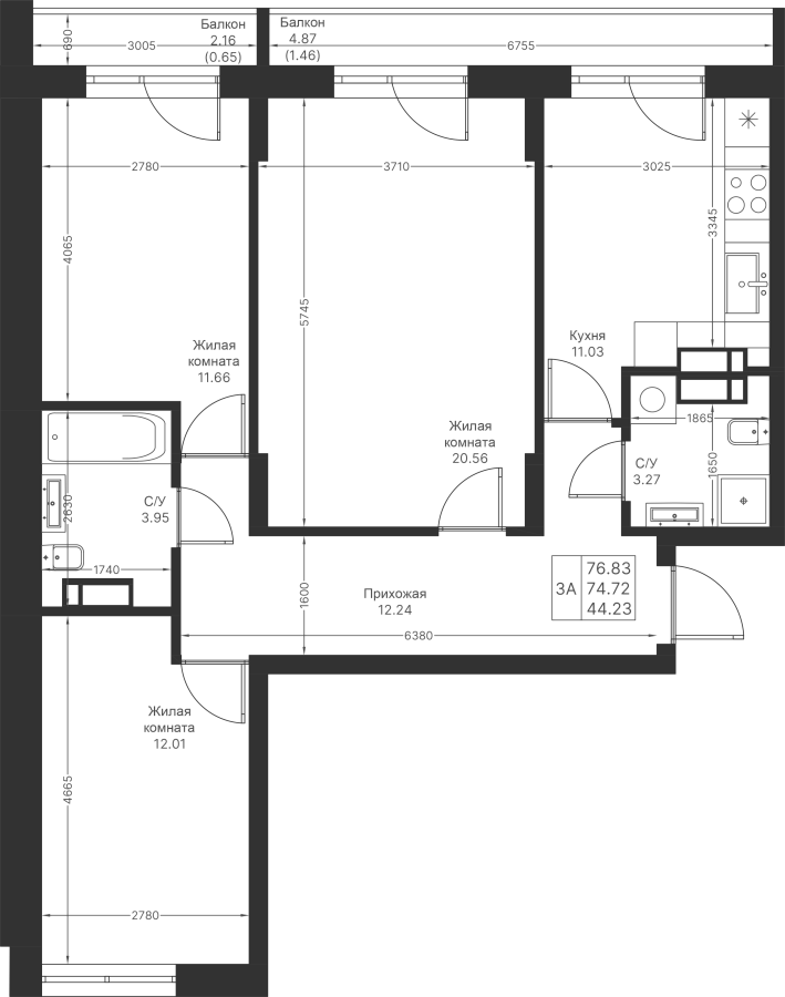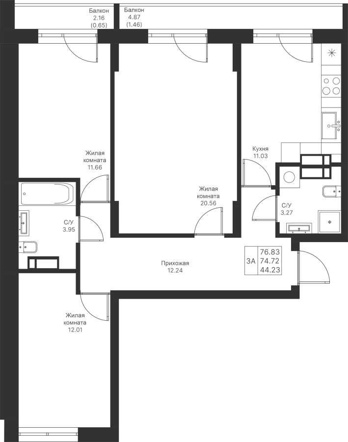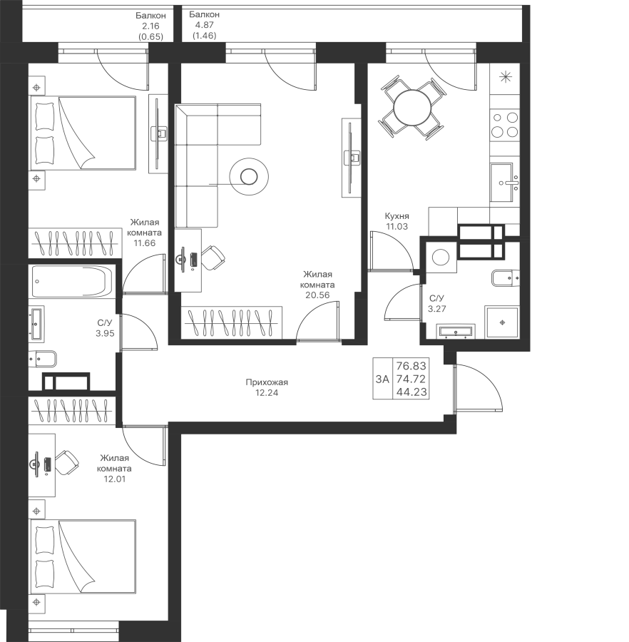 Визуализация и планировка, в том числе в части площади и размера стен жилого помещения, являются проектными и могут быть изменены в ходе строительства объекта. Цена квартиры зависит от выбранной программы и акции, актуальные цены можно уточнить у менеджеров и на момент заключения договора.