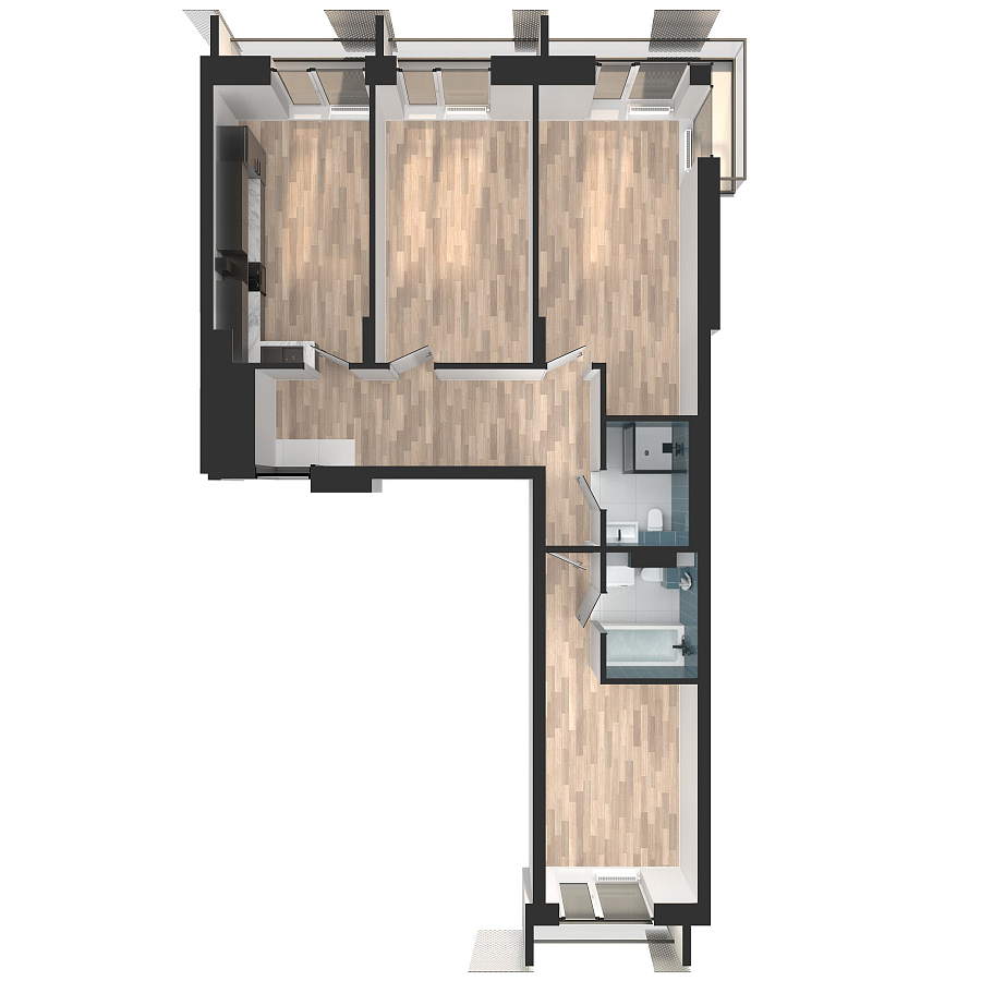 Визуализация и планировка, в том числе в части площади и размера стен жилого помещения, являются проектными и могут быть изменены в ходе строительства объекта. Цена квартиры зависит от выбранной программы и акции, актуальные цены можно уточнить у менеджеров и на момент заключения договора.