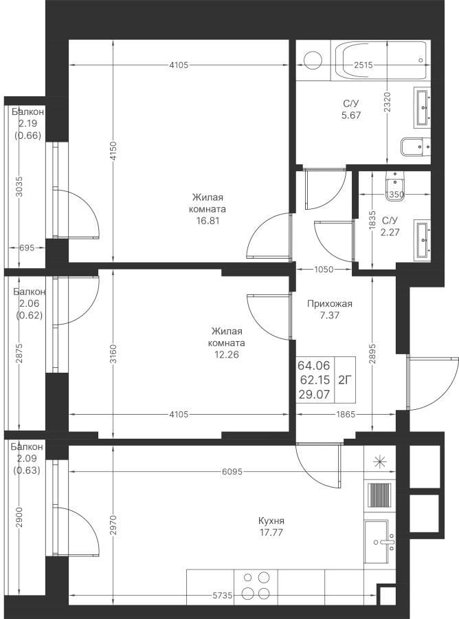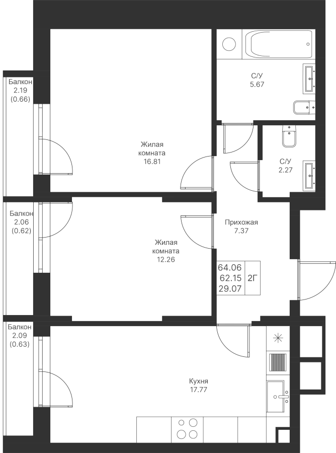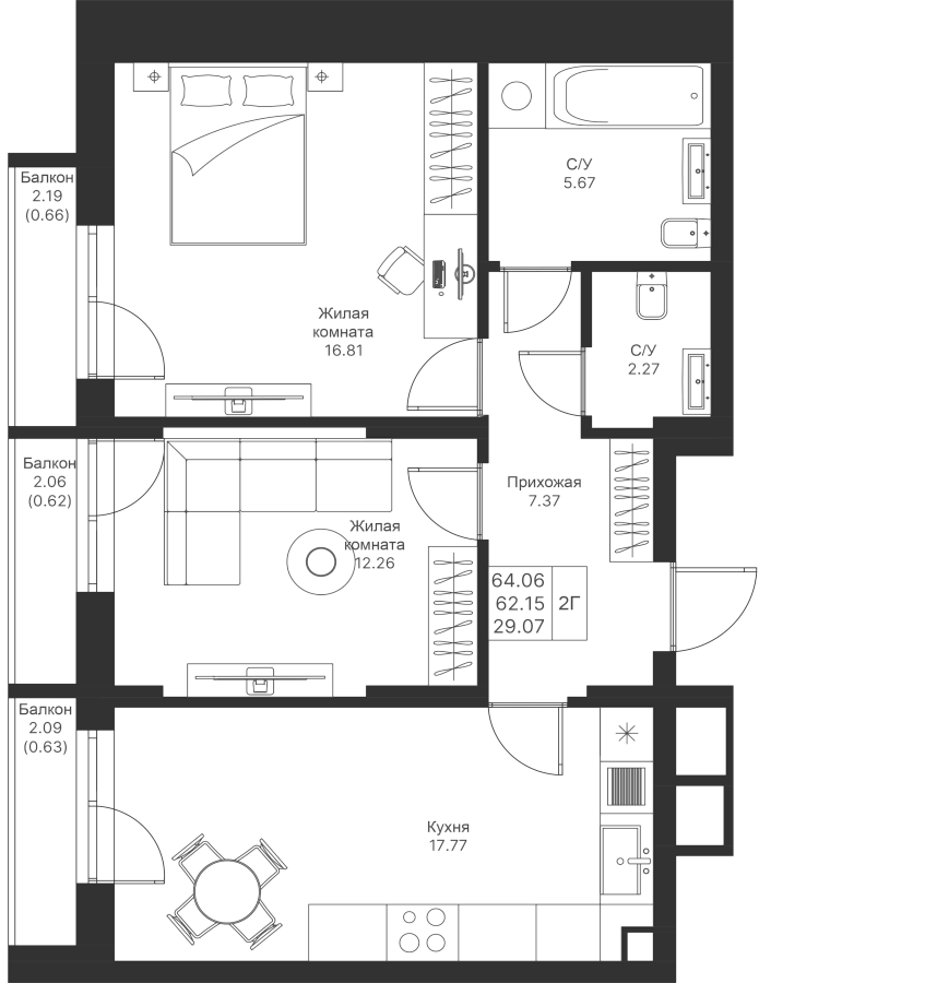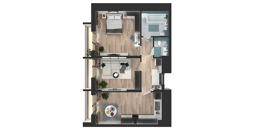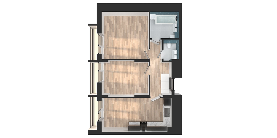 Визуализация и планировка, в том числе в части площади и размера стен жилого помещения, являются проектными и могут быть изменены в ходе строительства объекта. Цена квартиры зависит от выбранной программы и акции, актуальные цены можно уточнить у менеджеров и на момент заключения договора.