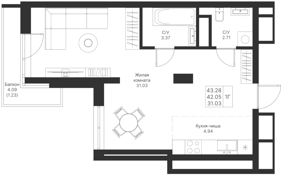 Визуализация и планировка, в том числе в части площади и размера стен жилого помещения, являются проектными и могут быть изменены в ходе строительства объекта. Цена квартиры зависит от выбранной программы и акции, актуальные цены можно уточнить у менеджеров и на момент заключения договора.