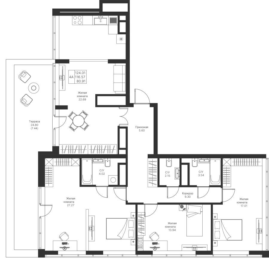 4-к квартира 124.01 м²