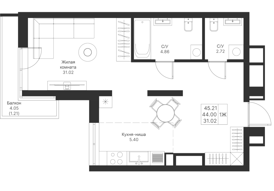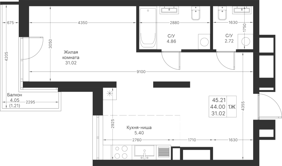 Визуализация и планировка, в том числе в части площади и размера стен жилого помещения, являются проектными и могут быть изменены в ходе строительства объекта. Цена квартиры зависит от выбранной программы и акции, актуальные цены можно уточнить у менеджеров и на момент заключения договора.