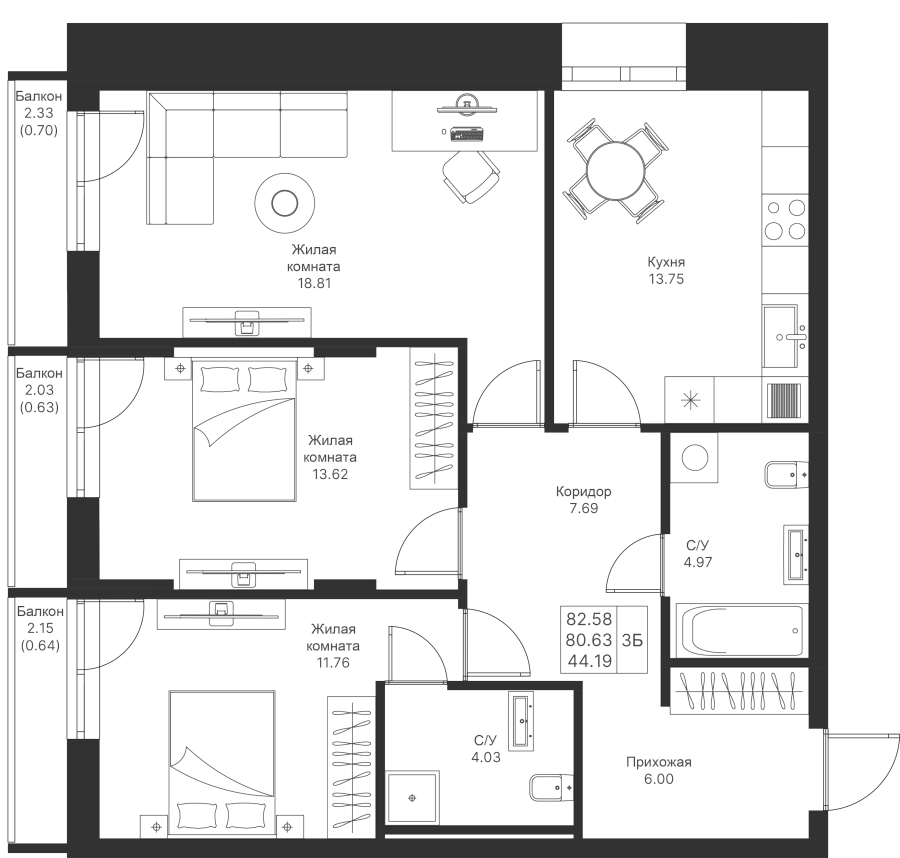 Визуализация и планировка, в том числе в части площади и размера стен жилого помещения, являются проектными и могут быть изменены в ходе строительства объекта. Цена квартиры зависит от выбранной программы и акции, актуальные цены можно уточнить у менеджеров и на момент заключения договора.