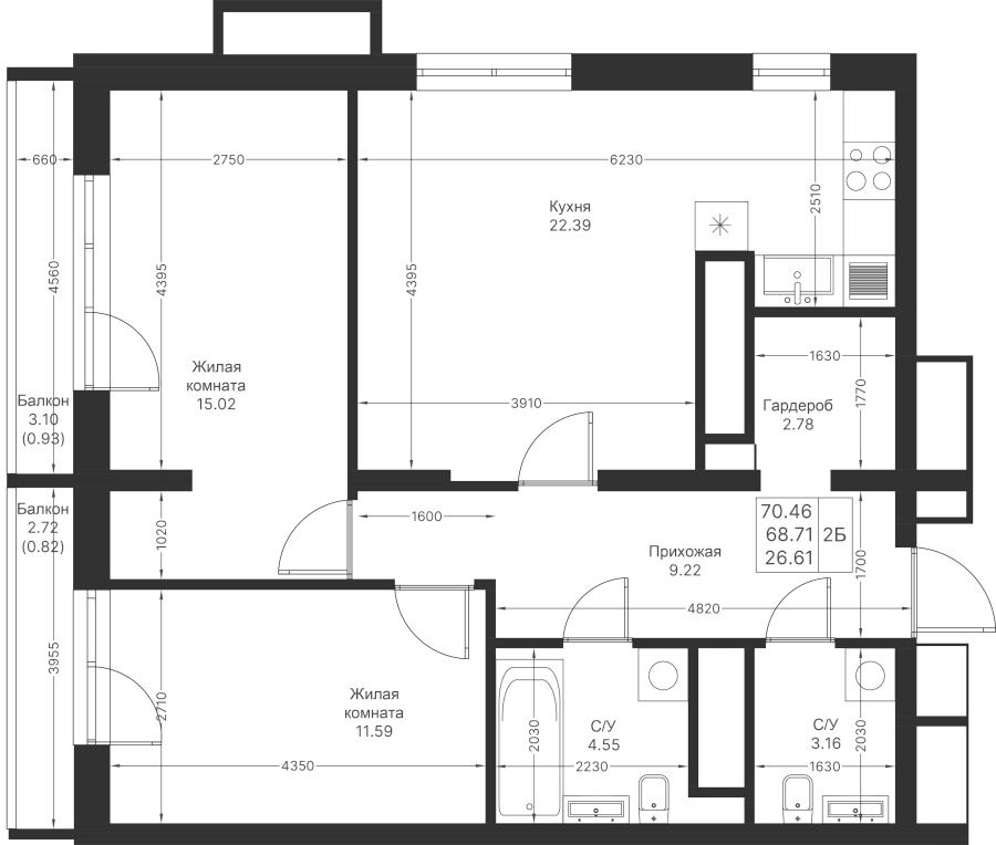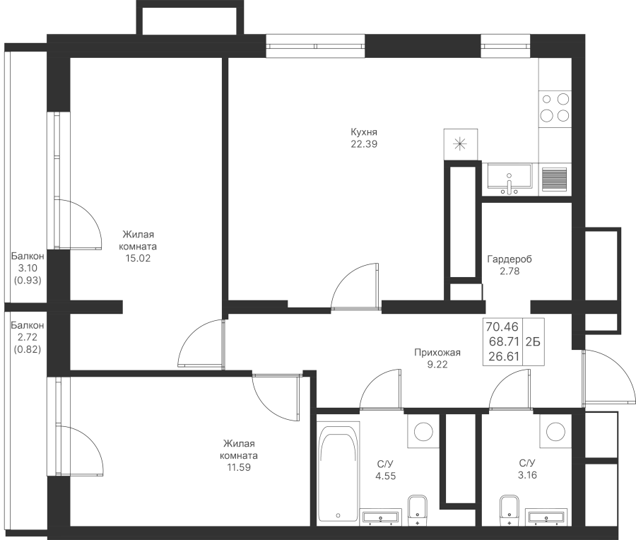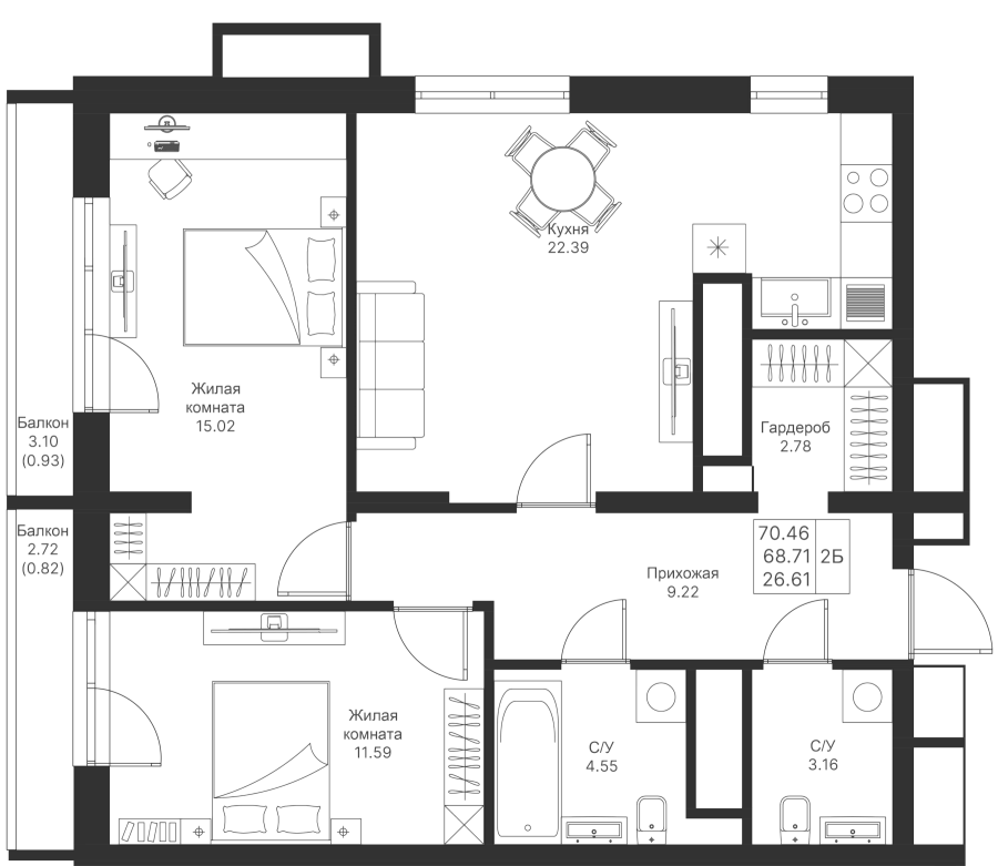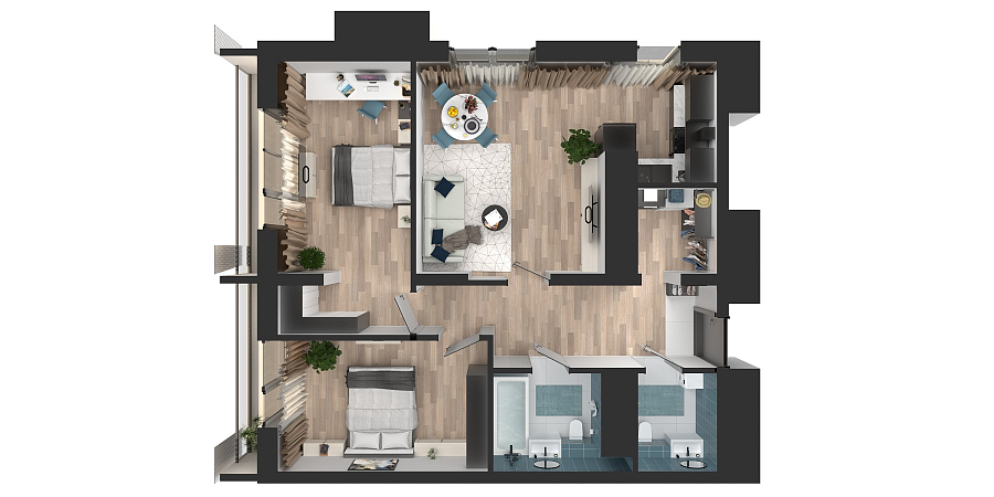 Визуализация и планировка, в том числе в части площади и размера стен жилого помещения, являются проектными и могут быть изменены в ходе строительства объекта. Цена квартиры зависит от выбранной программы и акции, актуальные цены можно уточнить у менеджеров и на момент заключения договора.