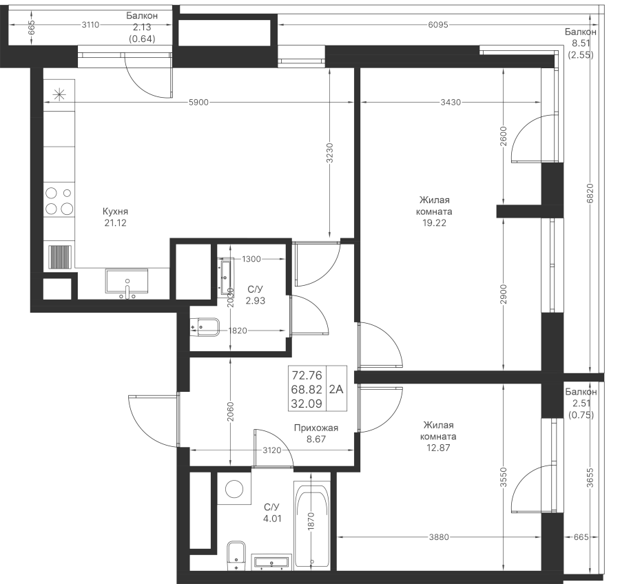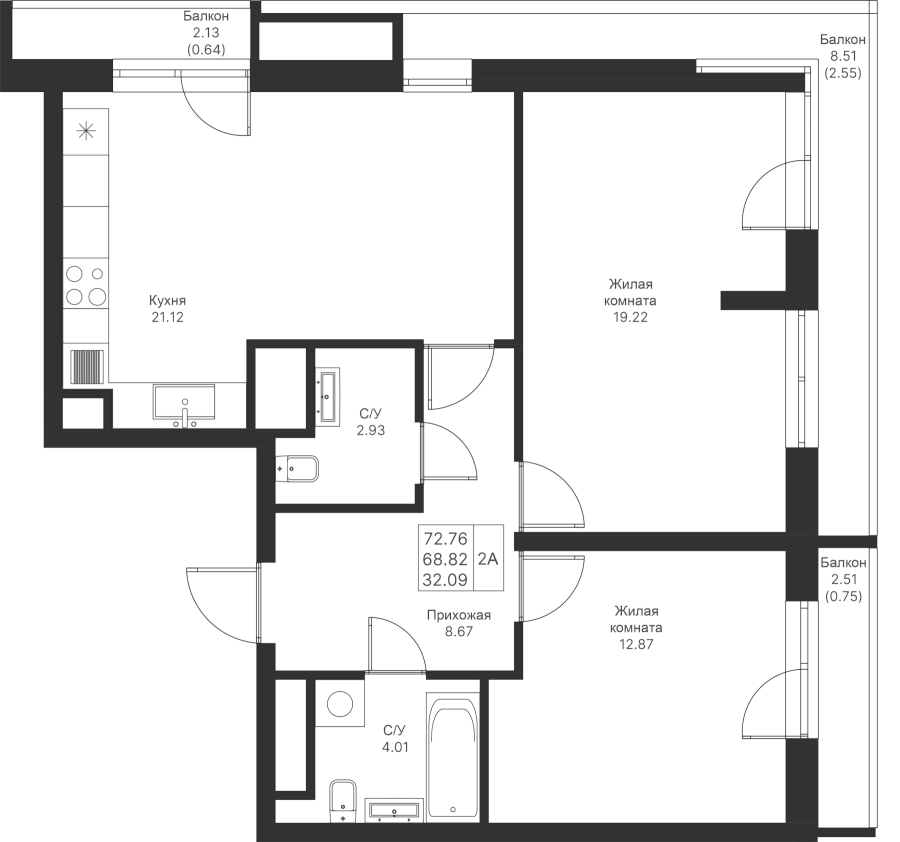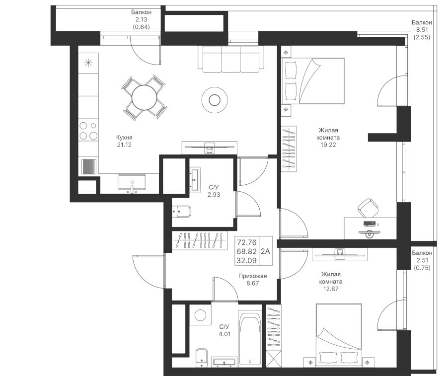 Визуализация и планировка, в том числе в части площади и размера стен жилого помещения, являются проектными и могут быть изменены в ходе строительства объекта. Цена квартиры зависит от выбранной программы и акции, актуальные цены можно уточнить у менеджеров и на момент заключения договора.