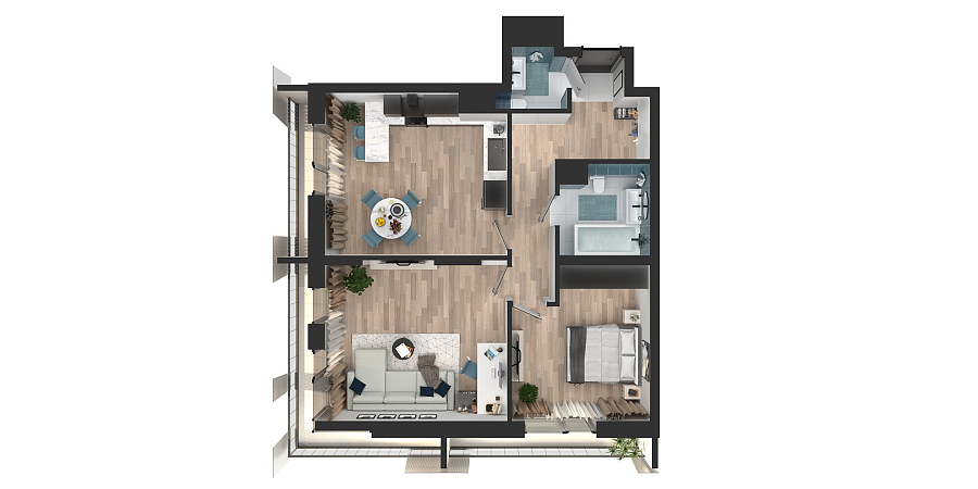 Визуализация и планировка, в том числе в части площади и размера стен жилого помещения, являются проектными и могут быть изменены в ходе строительства объекта. Цена квартиры зависит от выбранной программы и акции, актуальные цены можно уточнить у менеджеров и на момент заключения договора.