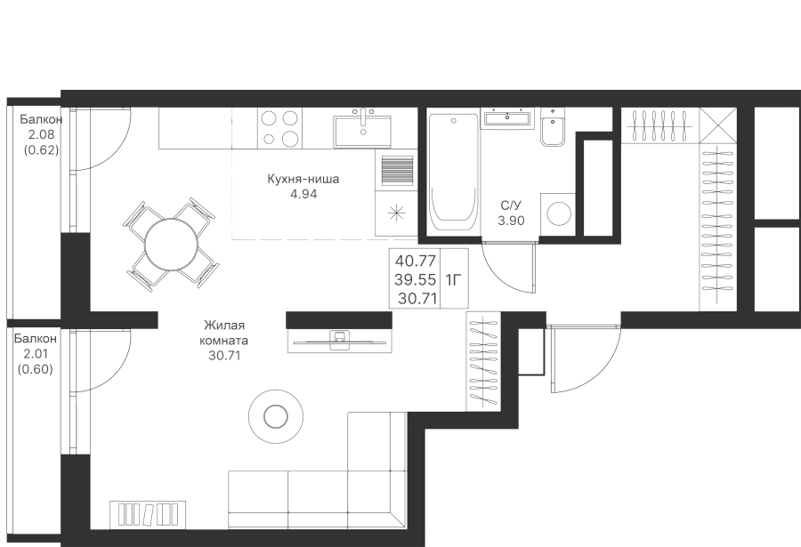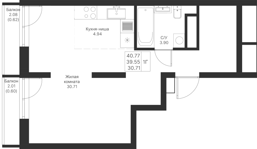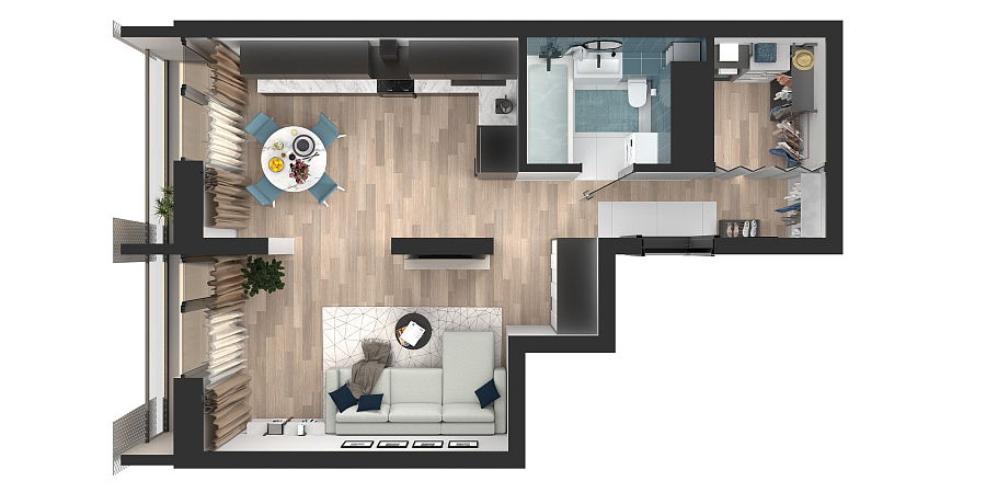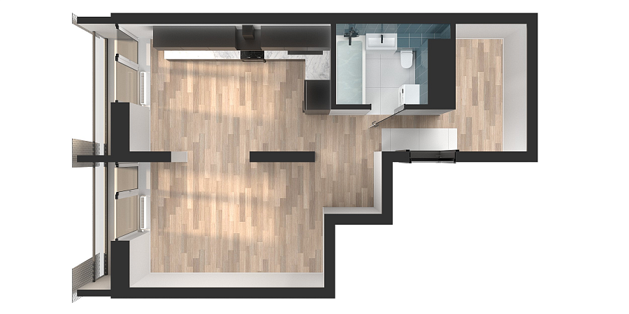 Визуализация и планировка, в том числе в части площади и размера стен жилого помещения, являются проектными и могут быть изменены в ходе строительства объекта. Цена квартиры зависит от выбранной программы и акции, актуальные цены можно уточнить у менеджеров и на момент заключения договора.