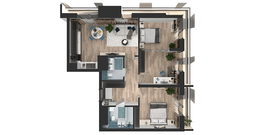 Визуализация и планировка, в том числе в части площади и размера стен жилого помещения, являются проектными и могут быть изменены в ходе строительства объекта. Цена квартиры зависит от выбранной программы и акции, актуальные цены можно уточнить у менеджеров и на момент заключения договора.