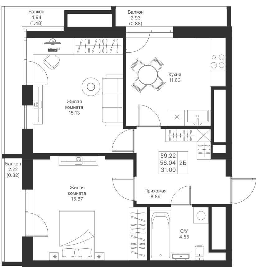 Визуализация и планировка, в том числе в части площади и размера стен жилого помещения, являются проектными и могут быть изменены в ходе строительства объекта. Цена квартиры зависит от выбранной программы и акции, актуальные цены можно уточнить у менеджеров и на момент заключения договора.