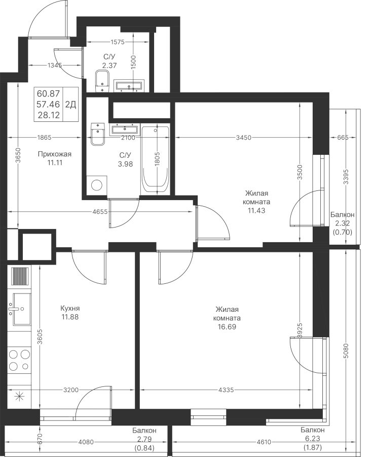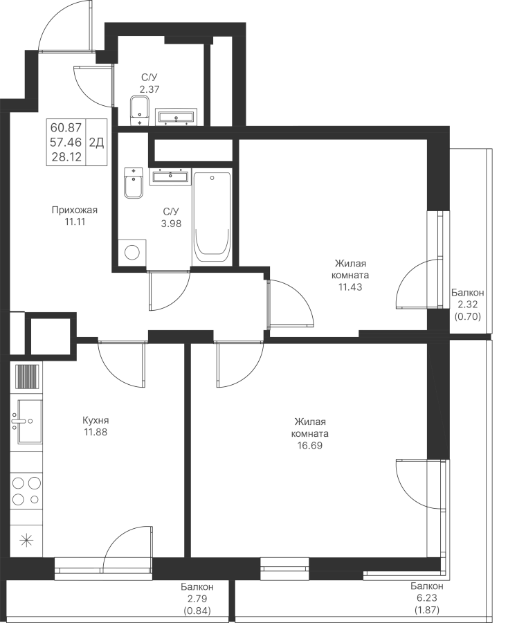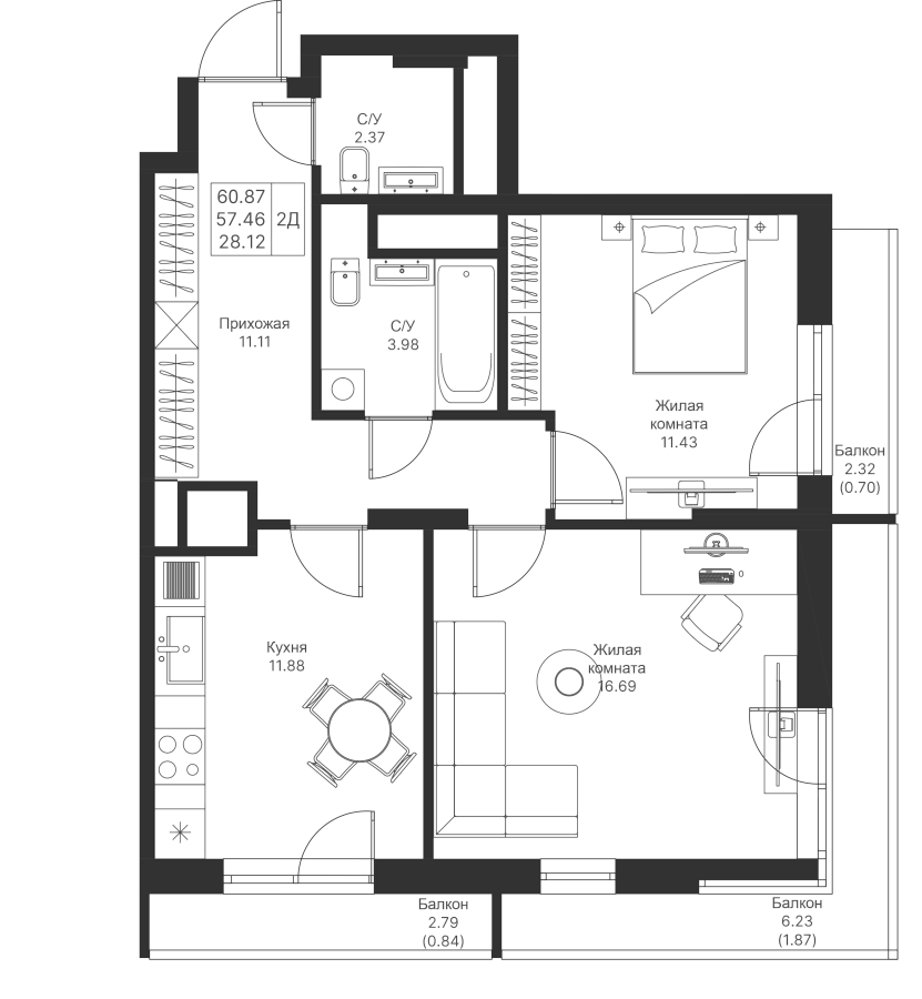 Визуализация и планировка, в том числе в части площади и размера стен жилого помещения, являются проектными и могут быть изменены в ходе строительства объекта. Цена квартиры зависит от выбранной программы и акции, актуальные цены можно уточнить у менеджеров и на момент заключения договора.