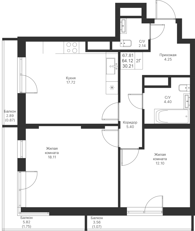 Визуализация и планировка, в том числе в части площади и размера стен жилого помещения, являются проектными и могут быть изменены в ходе строительства объекта. Цена квартиры зависит от выбранной программы и акции, актуальные цены можно уточнить у менеджеров и на момент заключения договора.