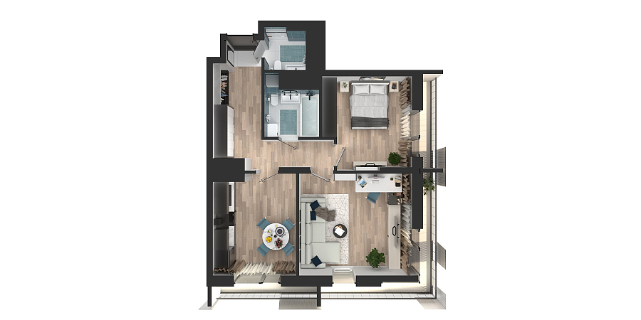 Визуализация и планировка, в том числе в части площади и размера стен жилого помещения, являются проектными и могут быть изменены в ходе строительства объекта. Цена квартиры зависит от выбранной программы и акции, актуальные цены можно уточнить у менеджеров и на момент заключения договора.