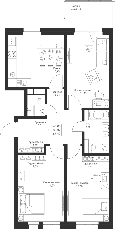 Визуализация и планировка, в том числе в части площади и размера стен жилого помещения, используемых цветовых решений на плане являются проектными и могут быть изменены в ходе строительства объекта. Цена квартиры зависит от выбранной программы и акции, актуальные цены можно уточнить у менеджеров и на момент заключения договора.