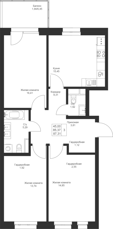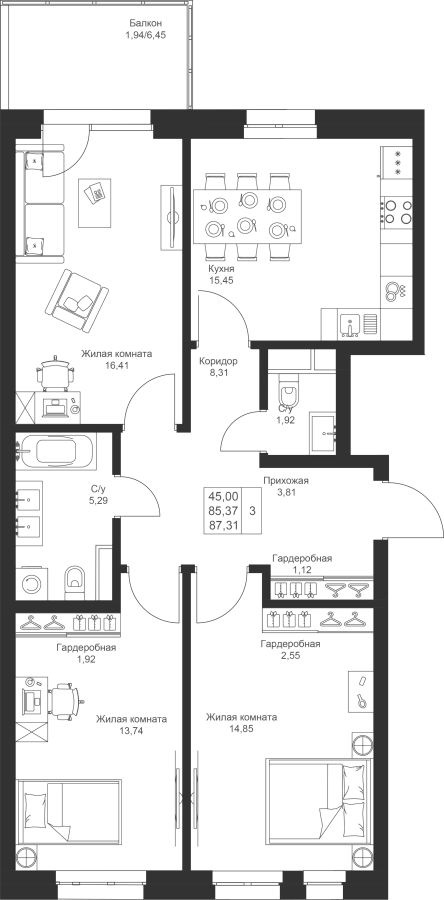 Визуализация и планировка, в том числе в части площади и размера стен жилого помещения, используемых цветовых решений на плане являются проектными и могут быть изменены в ходе строительства объекта. Цена квартиры зависит от выбранной программы и акции, актуальные цены можно уточнить у менеджеров и на момент заключения договора.