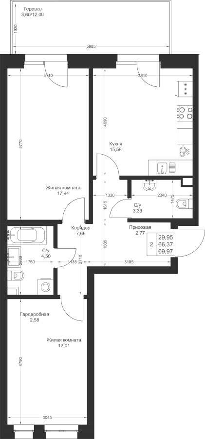 Визуализация и планировка, в том числе в части площади и размера стен жилого помещения, используемых цветовых решений на плане являются проектными и могут быть изменены в ходе строительства объекта. Цена квартиры зависит от выбранной программы и акции, актуальные цены можно уточнить у менеджеров и на момент заключения договора.