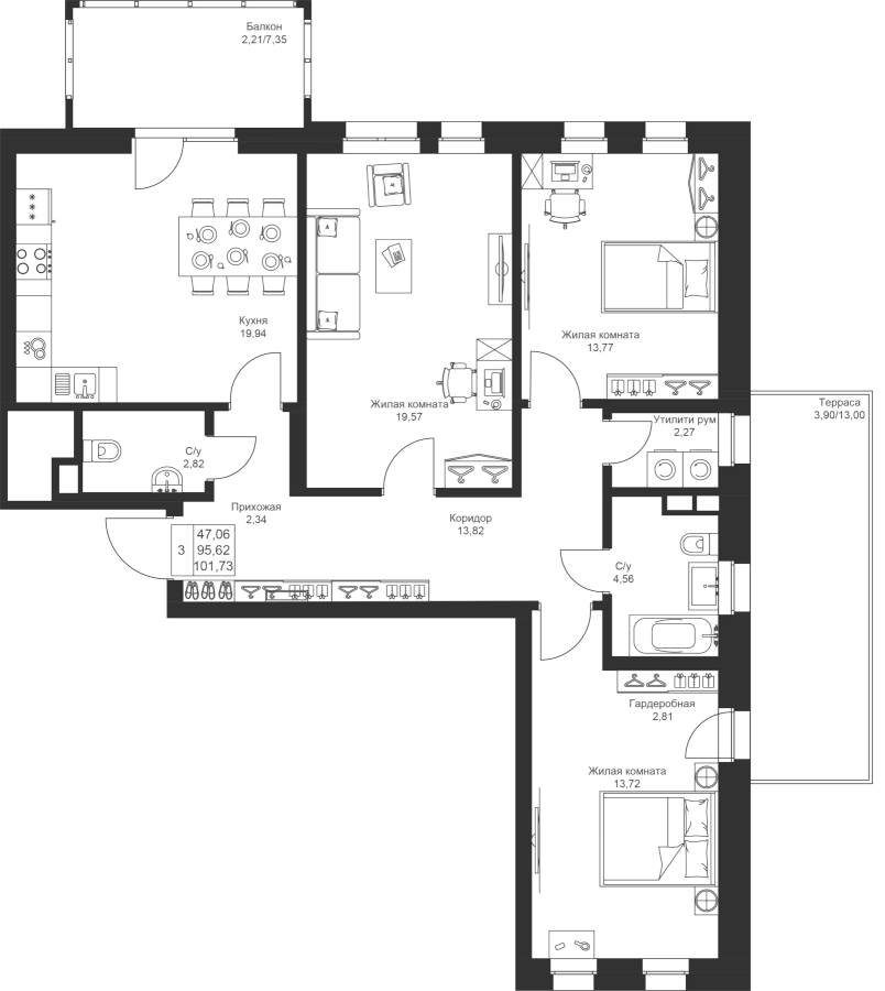 Визуализация и планировка, в том числе в части площади и размера стен жилого помещения, используемых цветовых решений на плане являются проектными и могут быть изменены в ходе строительства объекта. Цена квартиры зависит от выбранной программы и акции, актуальные цены можно уточнить у менеджеров и на момент заключения договора.