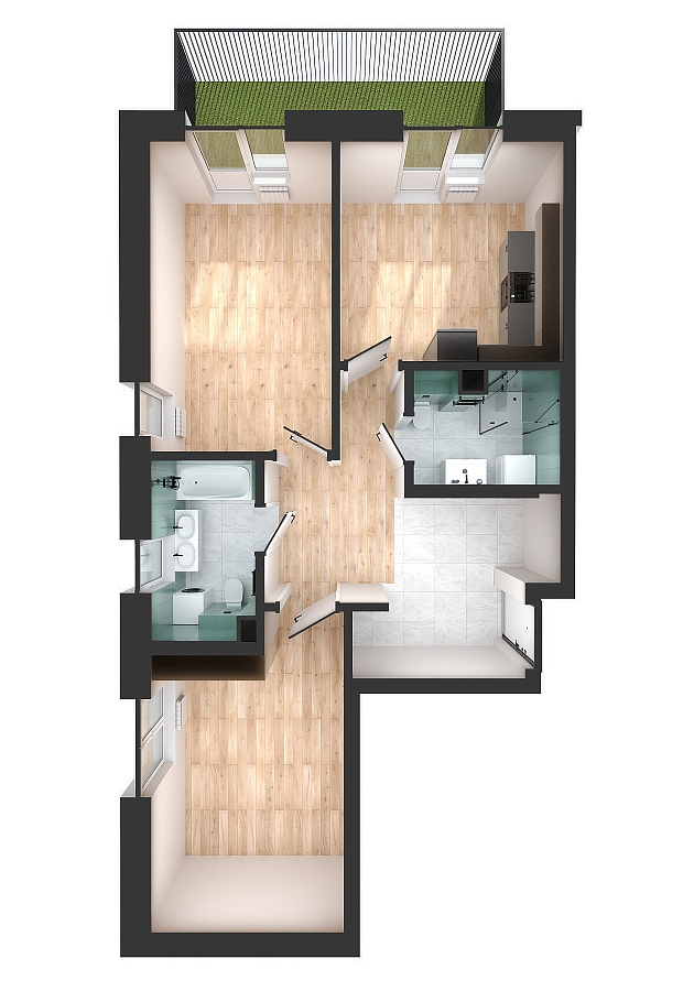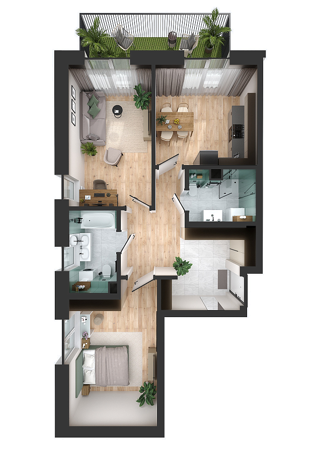 Визуализация и планировка, в том числе в части площади и размера стен жилого помещения, используемых цветовых решений на плане являются проектными и могут быть изменены в ходе строительства объекта. Цена квартиры зависит от выбранной программы и акции, актуальные цены можно уточнить у менеджеров и на момент заключения договора.