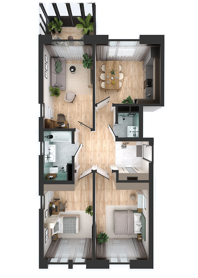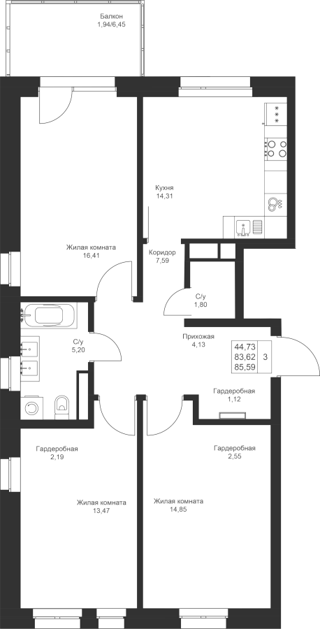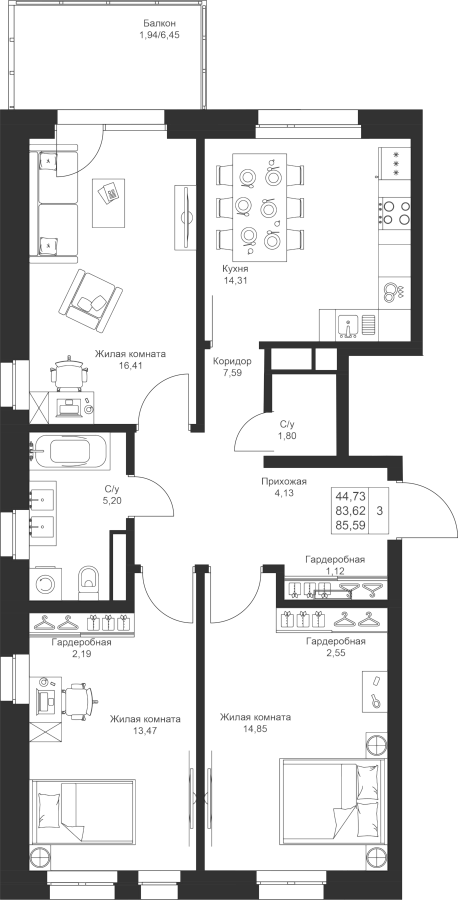 Визуализация и планировка, в том числе в части площади и размера стен жилого помещения, используемых цветовых решений на плане являются проектными и могут быть изменены в ходе строительства объекта. Цена квартиры зависит от выбранной программы и акции, актуальные цены можно уточнить у менеджеров и на момент заключения договора.
