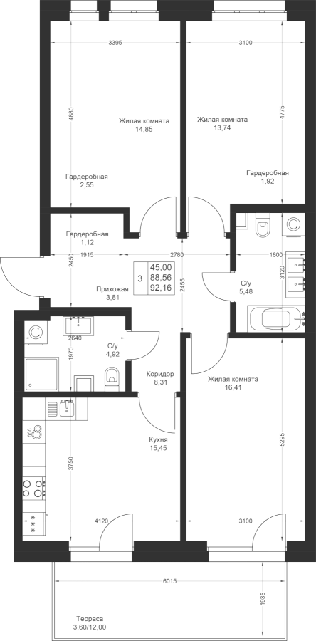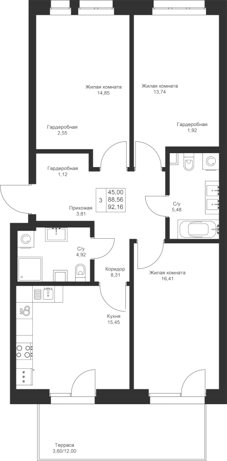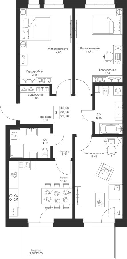 Визуализация и планировка, в том числе в части площади и размера стен жилого помещения, используемых цветовых решений на плане являются проектными и могут быть изменены в ходе строительства объекта. Цена квартиры зависит от выбранной программы и акции, актуальные цены можно уточнить у менеджеров и на момент заключения договора.