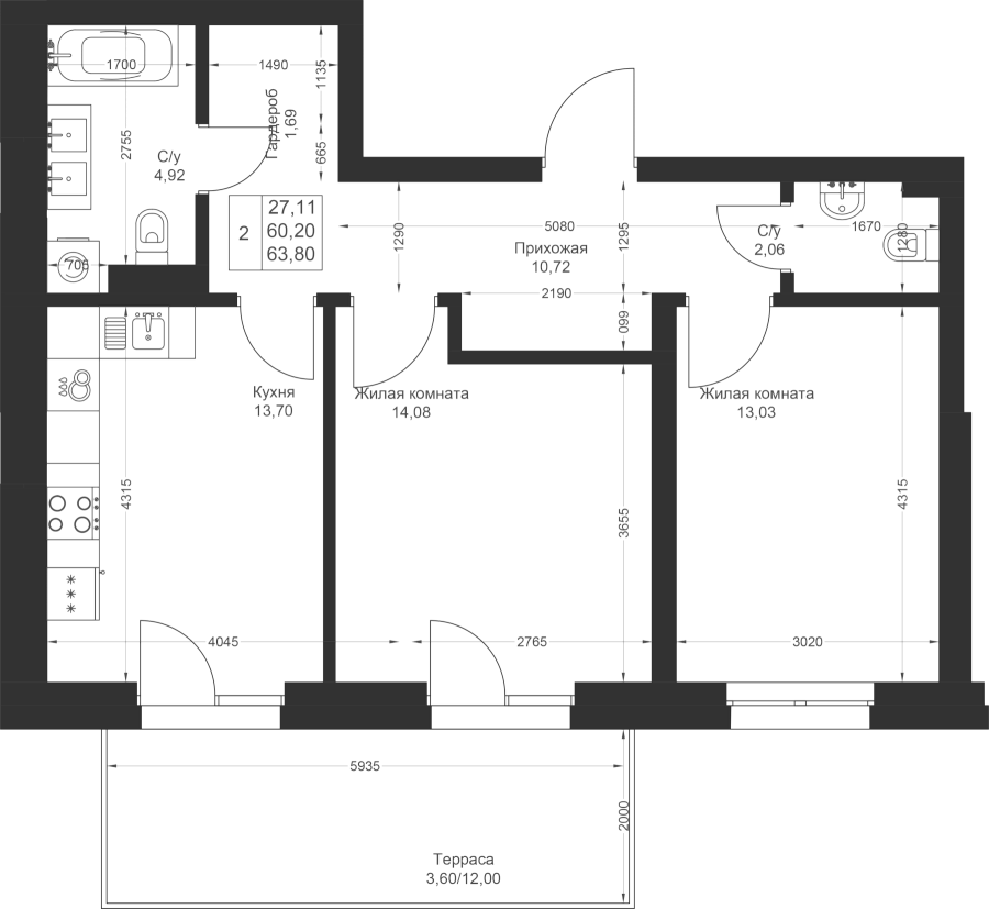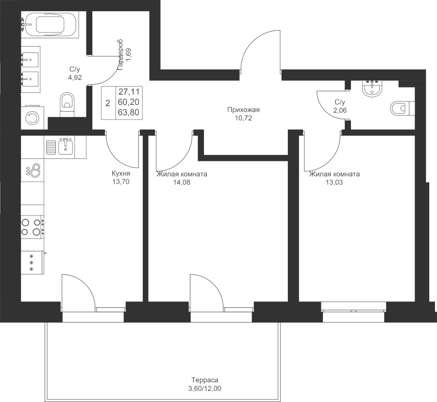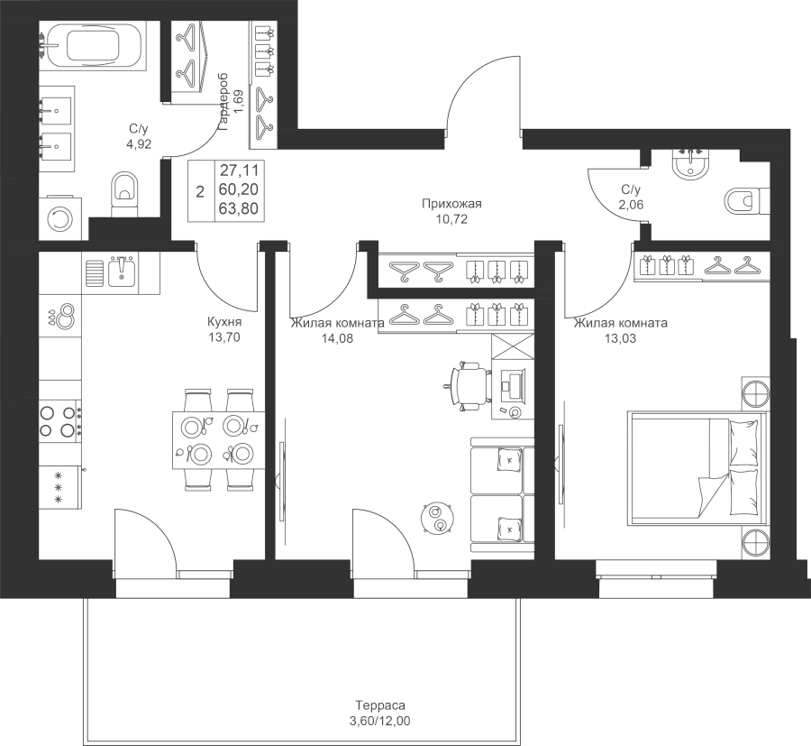 Визуализация и планировка, в том числе в части площади и размера стен жилого помещения, используемых цветовых решений на плане являются проектными и могут быть изменены в ходе строительства объекта. Цена квартиры зависит от выбранной программы и акции, актуальные цены можно уточнить у менеджеров и на момент заключения договора.