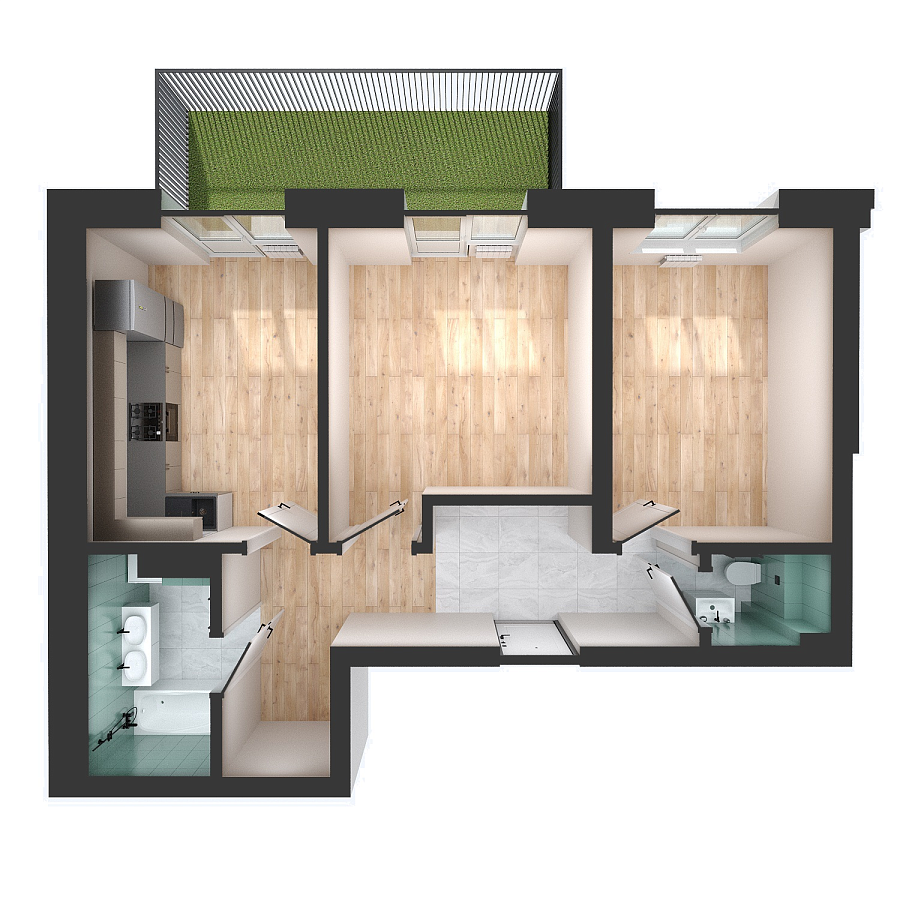 Визуализация и планировка, в том числе в части площади и размера стен жилого помещения, используемых цветовых решений на плане являются проектными и могут быть изменены в ходе строительства объекта. Цена квартиры зависит от выбранной программы и акции, актуальные цены можно уточнить у менеджеров и на момент заключения договора.