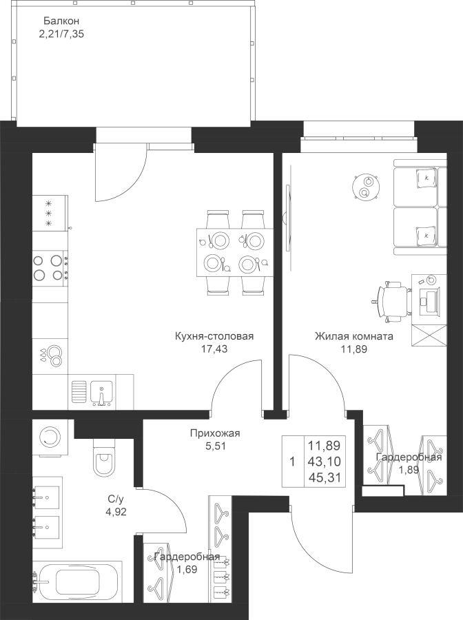 Визуализация и планировка, в том числе в части площади и размера стен жилого помещения, используемых цветовых решений на плане являются проектными и могут быть изменены в ходе строительства объекта. Цена квартиры зависит от выбранной программы и акции, актуальные цены можно уточнить у менеджеров и на момент заключения договора.