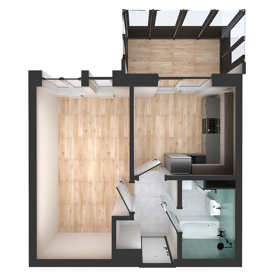 Визуализация и планировка, в том числе в части площади и размера стен жилого помещения, используемых цветовых решений на плане являются проектными и могут быть изменены в ходе строительства объекта. Цена квартиры зависит от выбранной программы и акции, актуальные цены можно уточнить у менеджеров и на момент заключения договора.