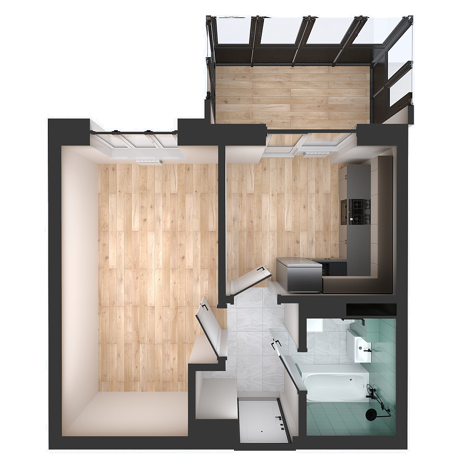 Визуализация и планировка, в том числе в части площади и размера стен жилого помещения, используемых цветовых решений на плане являются проектными и могут быть изменены в ходе строительства объекта. Цена квартиры зависит от выбранной программы и акции, актуальные цены можно уточнить у менеджеров и на момент заключения договора.
