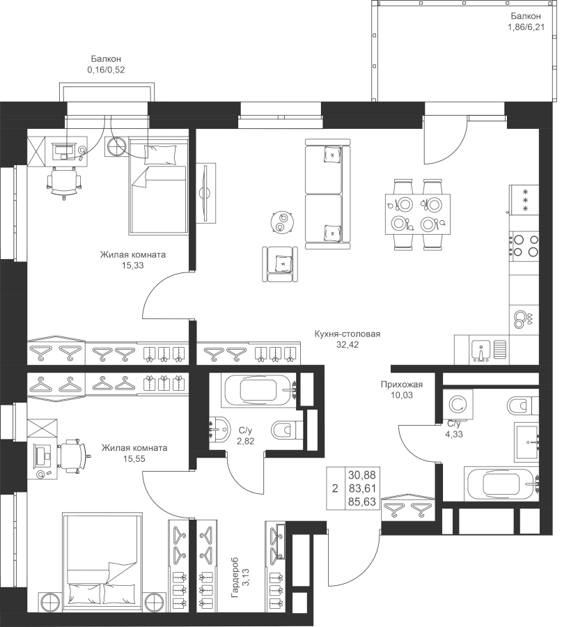 Визуализация и планировка, в том числе в части площади и размера стен жилого помещения, используемых цветовых решений на плане являются проектными и могут быть изменены в ходе строительства объекта. Цена квартиры зависит от выбранной программы и акции, актуальные цены можно уточнить у менеджеров и на момент заключения договора.