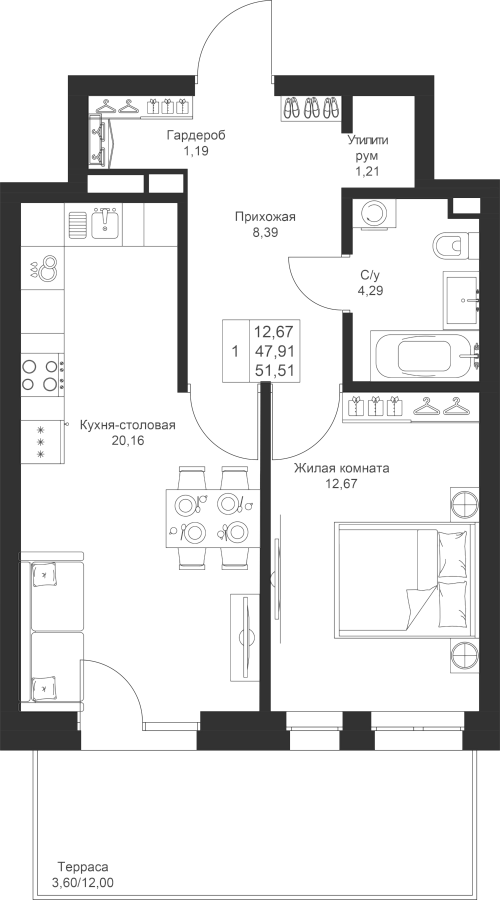 Визуализация и планировка, в том числе в части площади и размера стен жилого помещения, используемых цветовых решений на плане являются проектными и могут быть изменены в ходе строительства объекта. Цена квартиры зависит от выбранной программы и акции, актуальные цены можно уточнить у менеджеров и на момент заключения договора.