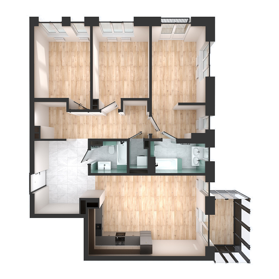 Визуализация и планировка, в том числе в части площади и размера стен жилого помещения, используемых цветовых решений на плане являются проектными и могут быть изменены в ходе строительства объекта. Цена квартиры зависит от выбранной программы и акции, актуальные цены можно уточнить у менеджеров и на момент заключения договора.