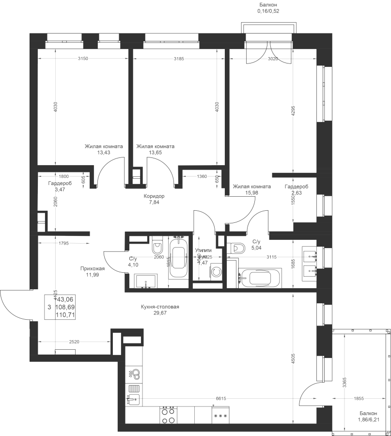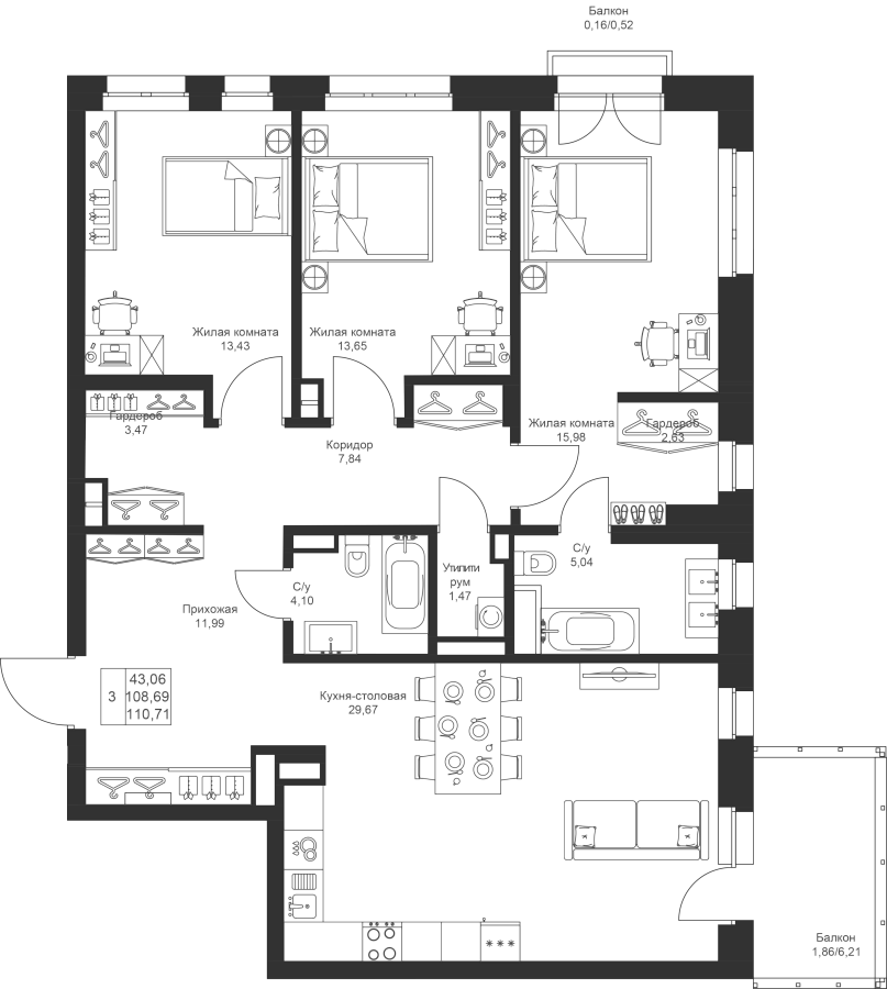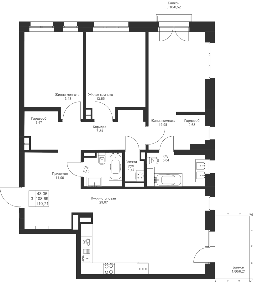 3-к квартира 110.71 м²