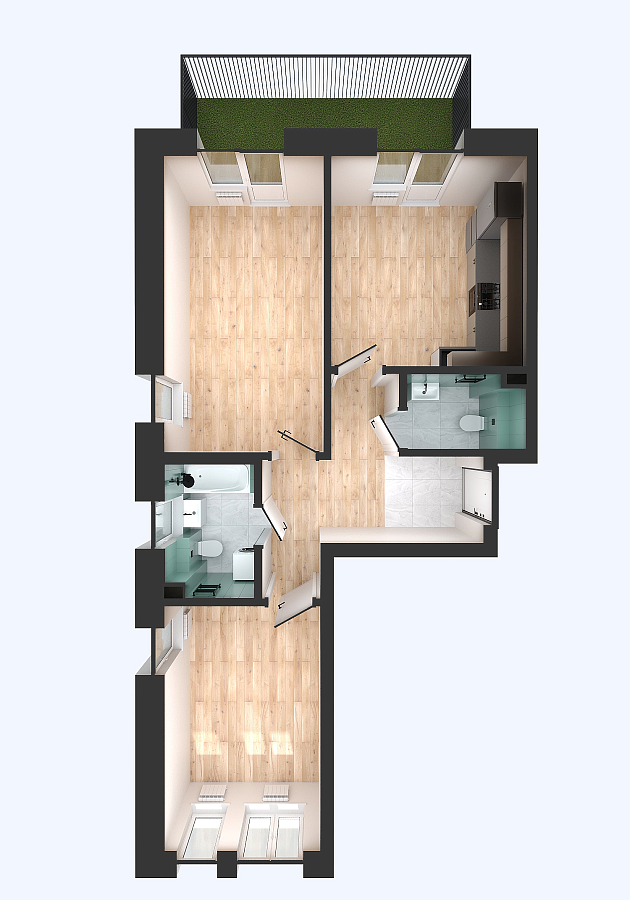 Визуализация и планировка, в том числе в части площади и размера стен жилого помещения, используемых цветовых решений на плане являются проектными и могут быть изменены в ходе строительства объекта. Цена квартиры зависит от выбранной программы и акции, актуальные цены можно уточнить у менеджеров и на момент заключения договора.