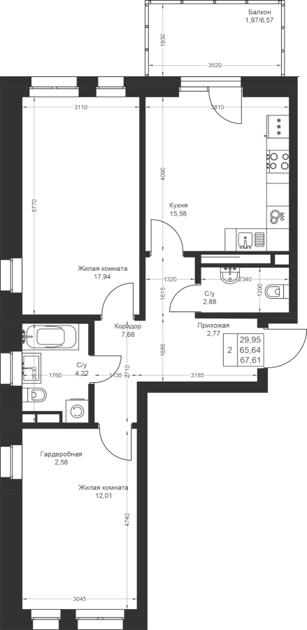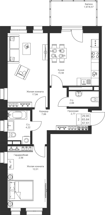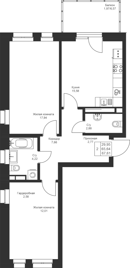 Визуализация и планировка, в том числе в части площади и размера стен жилого помещения, используемых цветовых решений на плане являются проектными и могут быть изменены в ходе строительства объекта. Цена квартиры зависит от выбранной программы и акции, актуальные цены можно уточнить у менеджеров и на момент заключения договора.