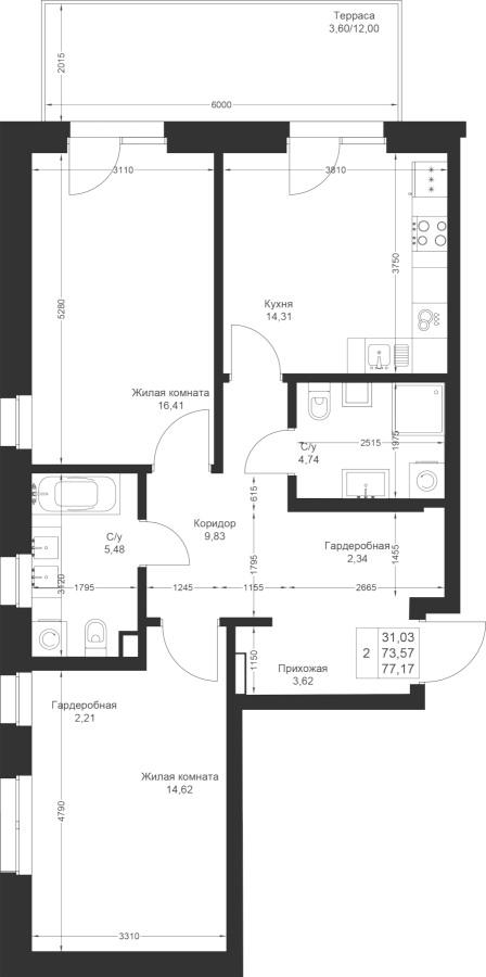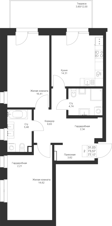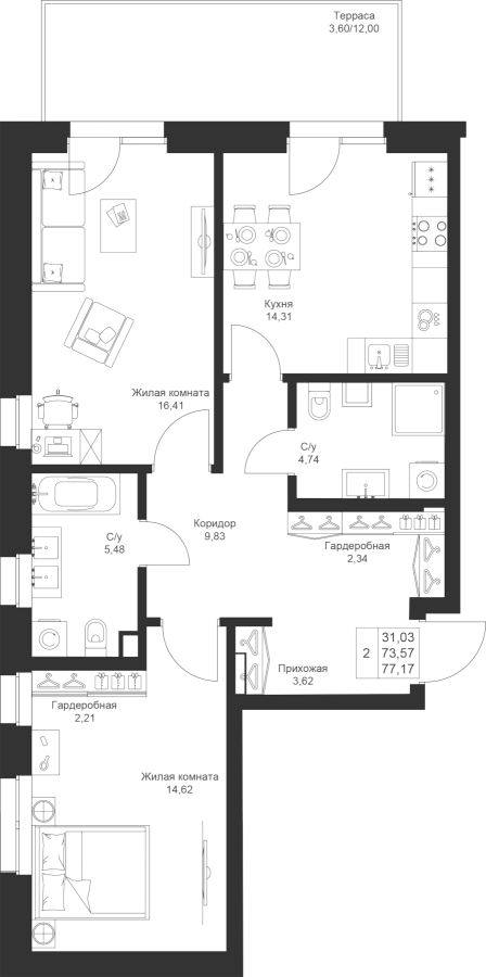 Визуализация и планировка, в том числе в части площади и размера стен жилого помещения, используемых цветовых решений на плане являются проектными и могут быть изменены в ходе строительства объекта. Цена квартиры зависит от выбранной программы и акции, актуальные цены можно уточнить у менеджеров и на момент заключения договора.