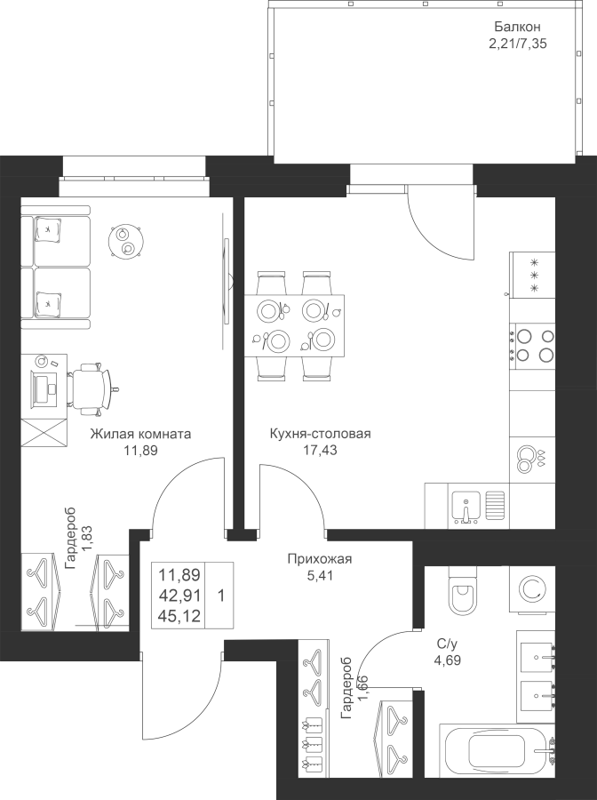 Визуализация и планировка, в том числе в части площади и размера стен жилого помещения, используемых цветовых решений на плане являются проектными и могут быть изменены в ходе строительства объекта. Цена квартиры зависит от выбранной программы и акции, актуальные цены можно уточнить у менеджеров и на момент заключения договора.