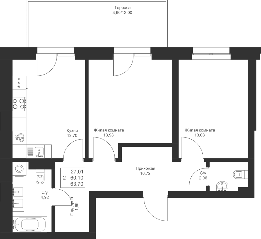 Визуализация и планировка, в том числе в части площади и размера стен жилого помещения, используемых цветовых решений на плане являются проектными и могут быть изменены в ходе строительства объекта. Цена квартиры зависит от выбранной программы и акции, актуальные цены можно уточнить у менеджеров и на момент заключения договора.