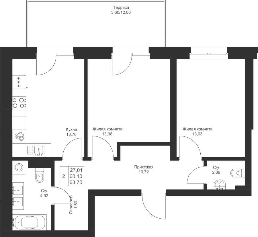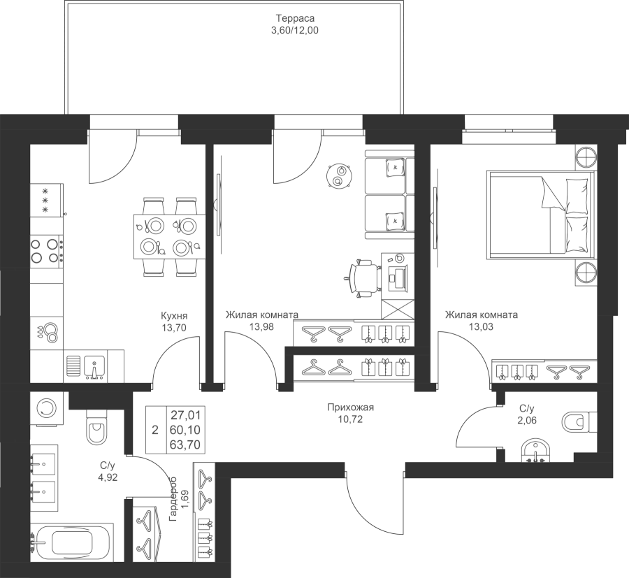 Визуализация и планировка, в том числе в части площади и размера стен жилого помещения, используемых цветовых решений на плане являются проектными и могут быть изменены в ходе строительства объекта. Цена квартиры зависит от выбранной программы и акции, актуальные цены можно уточнить у менеджеров и на момент заключения договора.
