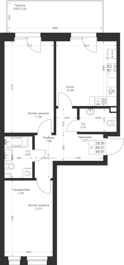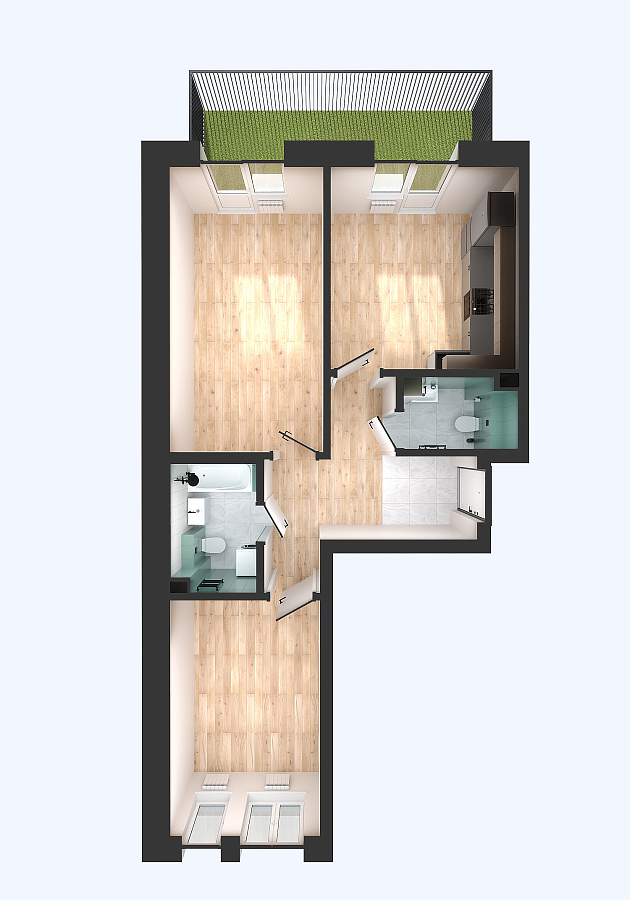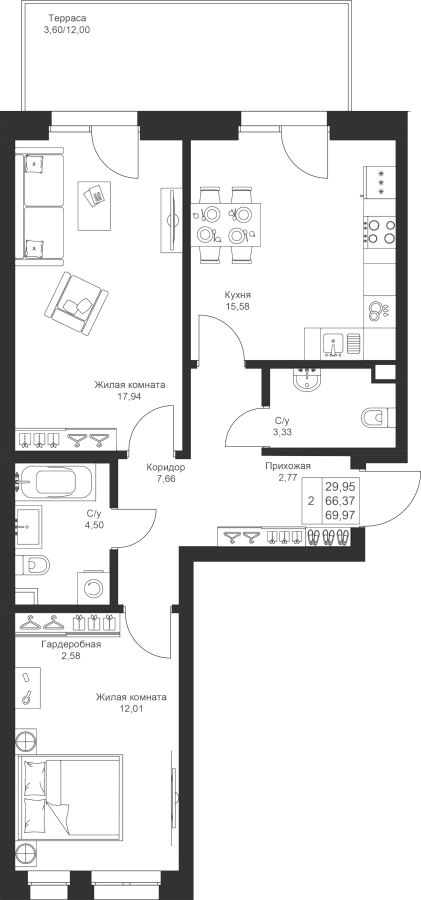 Визуализация и планировка, в том числе в части площади и размера стен жилого помещения, используемых цветовых решений на плане являются проектными и могут быть изменены в ходе строительства объекта. Цена квартиры зависит от выбранной программы и акции, актуальные цены можно уточнить у менеджеров и на момент заключения договора.