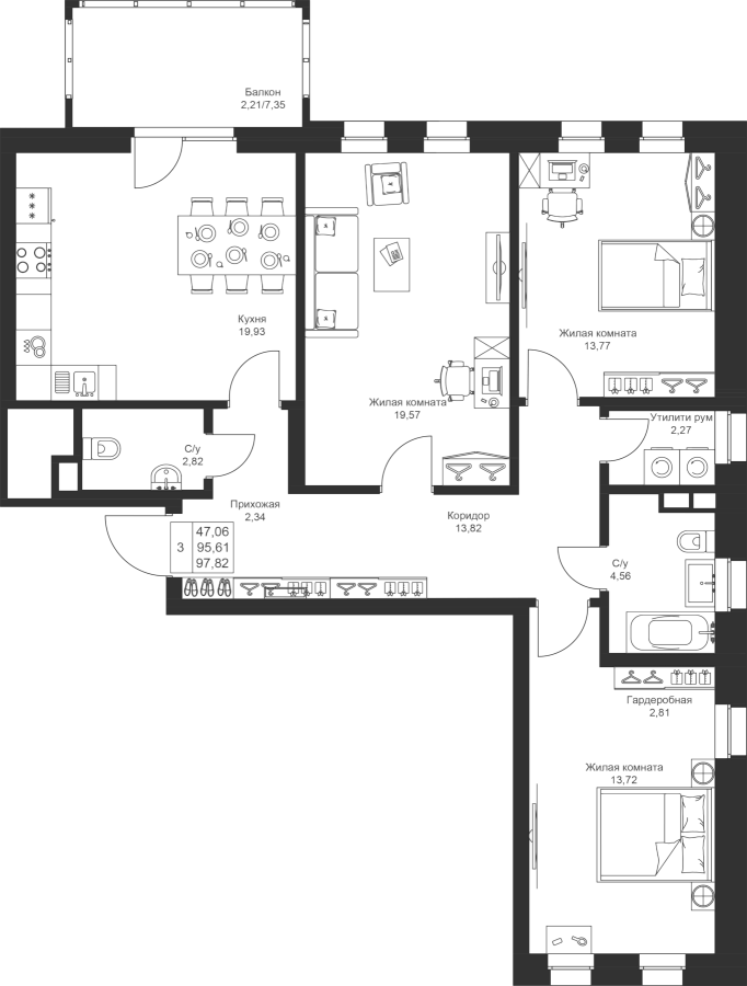 Визуализация и планировка, в том числе в части площади и размера стен жилого помещения, используемых цветовых решений на плане являются проектными и могут быть изменены в ходе строительства объекта. Цена квартиры зависит от выбранной программы и акции, актуальные цены можно уточнить у менеджеров и на момент заключения договора.