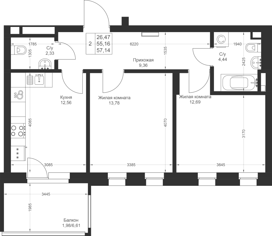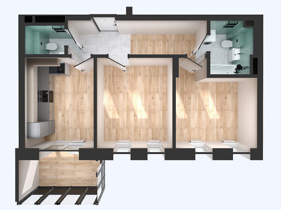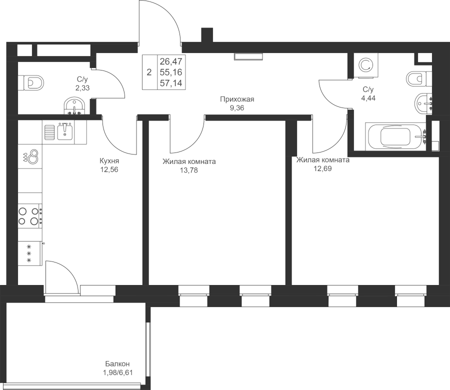 Визуализация и планировка, в том числе в части площади и размера стен жилого помещения, используемых цветовых решений на плане являются проектными и могут быть изменены в ходе строительства объекта. Цена квартиры зависит от выбранной программы и акции, актуальные цены можно уточнить у менеджеров и на момент заключения договора.