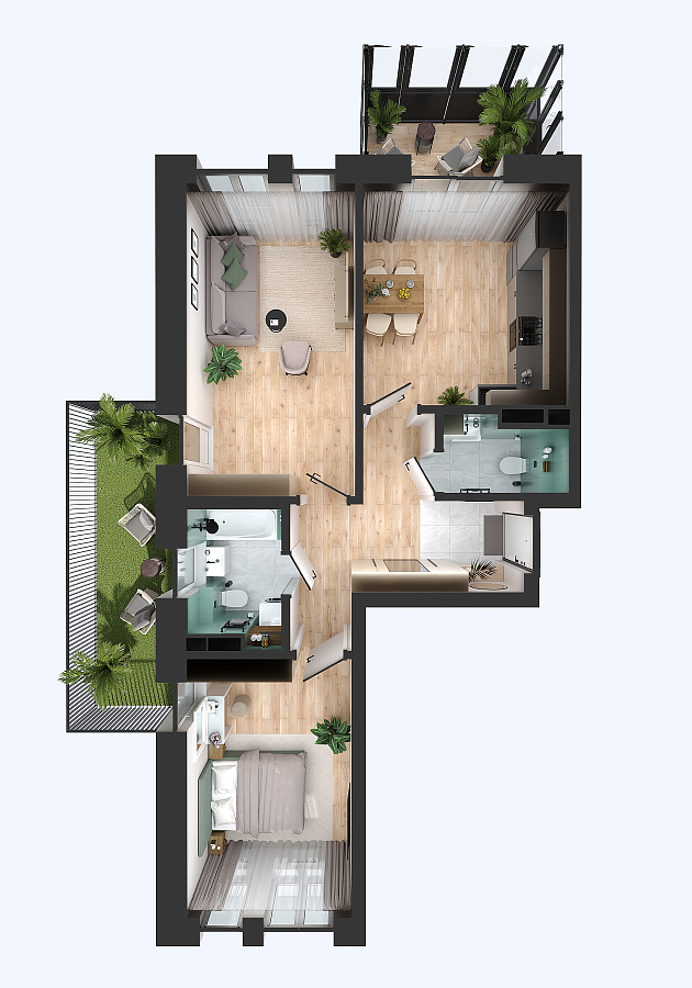 Визуализация и планировка, в том числе в части площади и размера стен жилого помещения, используемых цветовых решений на плане являются проектными и могут быть изменены в ходе строительства объекта. Цена квартиры зависит от выбранной программы и акции, актуальные цены можно уточнить у менеджеров и на момент заключения договора.